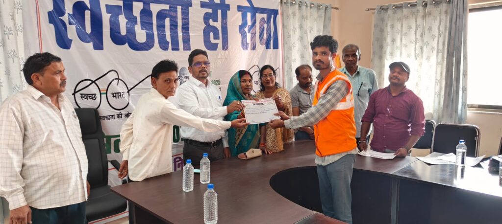 सफाई मित्र सम्मान समारोह आयोजित कर प्रमाण पत्र वितरित किया गया ।
