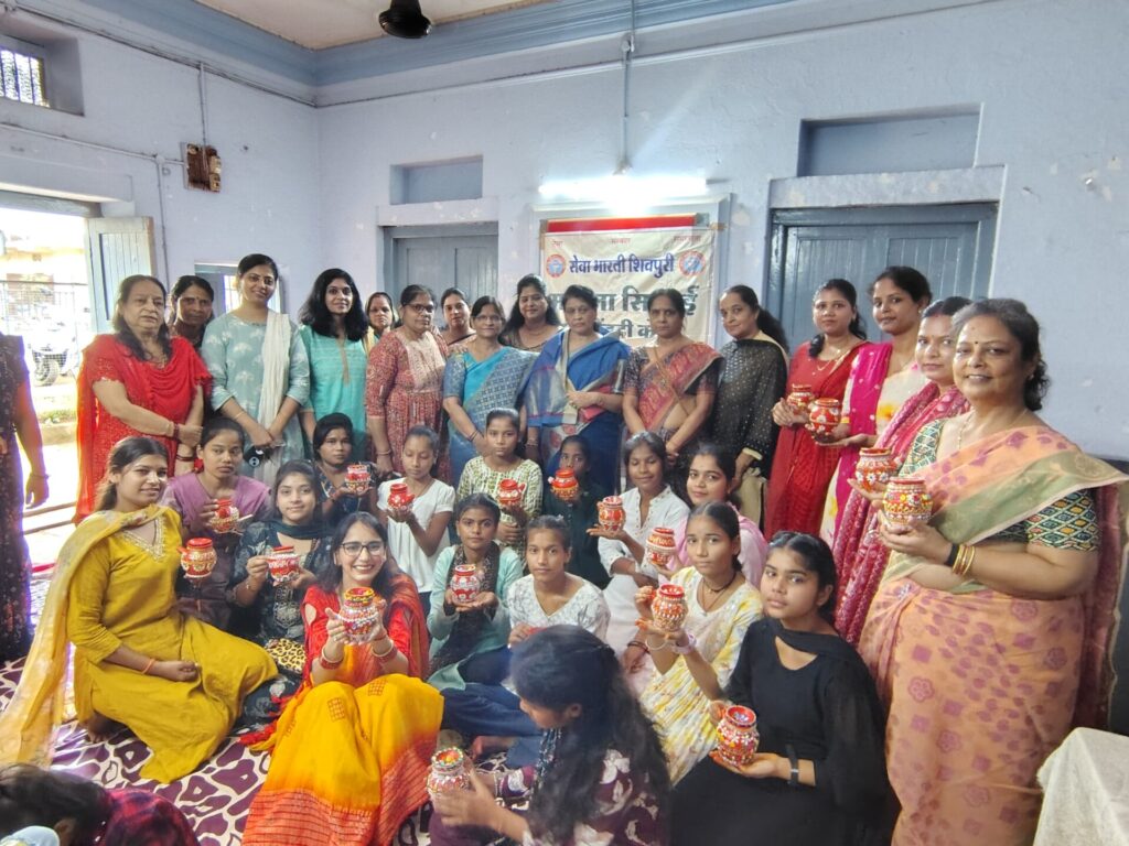 शिवपुरी। रंजीत गुप्ता। शिवपुरी में सेवा भारती द्वारा संस्था द्वारा इस वर्ष करवा सजाओ प्रतियोगिता का आयोजन कमलागंज स्थित संस्था के मेहंदी एवं सिलाई केंद्र पर आयोजित किया गया। इस प्रतियोगिता में 19 प्रतिभागियों ने भाग लिया। सभी ने बहुत अच्छे ढंग से करवाओ को सजाया, इसके लिए उन्हें 1 घंटे का समय दिया गया।