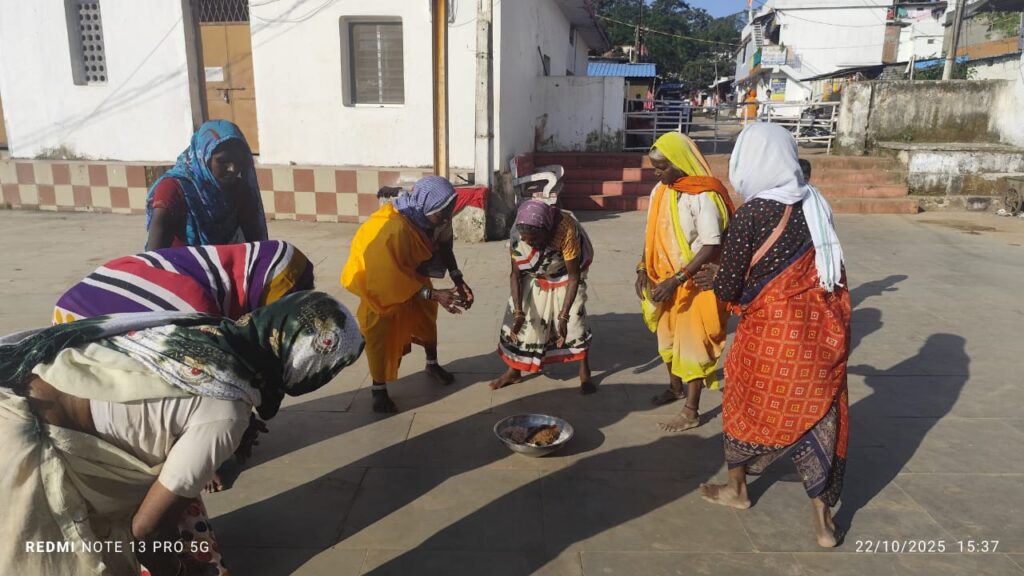 अमरकंटक। श्रवण उपाध्याय। मां नर्मदा उद्गम स्थली पवित्र नगरी अमरकंटक जो पतित पावनी मां नर्मदा की उद्गम स्थली के रूप में प्रतिष्ठित है , यहां दीपावली के पावन अवसर पर पारंपरिक लोक संस्कृति की अनुपम झलक देखने को मिली । उद्गम स्थल परिसर के सामने ग्रामीण अंचल की महिलाओं ने पारंपरिक सुआ रीना गायन एवं नृत्य के माध्यम से त्योहार की खुशियाँ अपने विशेष अंदाज़ में मनाईं ।