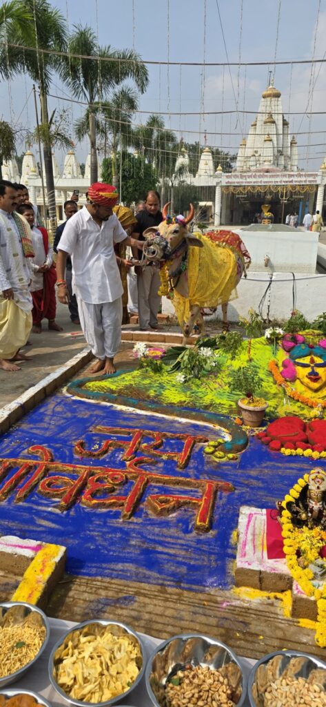 देपालपुर। संदीप सेन। दीपावली के दूसरे दिन पारंपरिक रूप से मनाए जाने वाले धोक पड़वा और गोवर्धन पूजा पर्व पर बुधवार को नगरभर में श्रद्धा और उत्साह का माहौल रहा। विशेष आयोजन श्री 24 अवतार मंदिर परिसर में हुआ, जहां भगवान श्रीकृष्ण की मनोहारी झांकी ने श्रद्धालुओं को भाव-विभोर कर दिया। मंदिर प्रांगण में भगवान श्रीकृष्ण की आकृति को गोवर्धन पर्वत के स्वरूप में सजाया गया, जिसके दर्शन करने श्रद्धालुओं की भीड़ उमड़ पड़ी। भक्तों ने गौमाता के साथ गोवर्धन जी की परिक्रमा की और अपनी आस्था व्यक्त की। आयोजन के दौरान भगवान को 56 भोग का भव्य प्रसाद अर्पित किया गया। पूजा-अर्चना के बाद महाप्रसादी का वितरण किया गया, जिसमें सैकड़ों श्रद्धालुओं ने भाग लिया। भक्ति संगीत और श्रीकृष्ण भजनों से वातावरण गुंजायमान रहा। नगर के विभिन्न मंदिरों, घरों और चौक-चौराहों पर भी गोवर्धन पूजा और धोक पड़वा के पारंपरिक अनुष्ठान संपन्न हुए। धार्मिक आस्था और लोक परंपराओं का संगम बना यह पर्व, श्रद्धालुओं के लिए आनंद, भक्ति और सांस्कृतिक एकता का प्रतीक रहा।