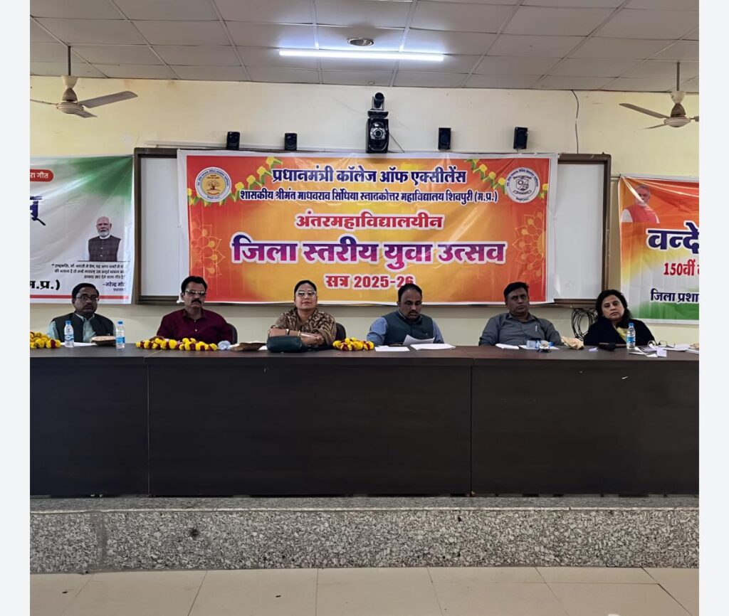 शिवपुरी। रंजीत गुप्ता। शासकीय स्नातकोत्तर महाविद्यालय प्रधानमंत्री कॉलेज ऑफ एक्सीलेंस में सत्र 2025- 26 का जिला स्तरीय महविद्यालयींन युवा उत्सव आयोजित किया गया। इस युवा उत्सव का शुभारंभ विवेकानंद सभागार मे महाविद्यालय प्राचार्य प्रो पवन कुमार श्रीवास्तव एवं अतिथियों शैलजा लवांगीकर, सुनील व्यास, रंजीत गुप्ता द्वारा माँ सरस्वती एवम स्वामी विवेकानंद की प्रतिमा पर माल्यार्पण एवम दीप प्रज्वलित कर किया गया। युवा उत्सव में रंगोली वक्तृत्व कला, वाद विवाद, क्विज एवम पोस्टर मेकिंग प्रतियोगिता का आयोजन किया गया। वक्तृत्व कला में मंजरी शर्मा, वाद विवाद में पक्ष में अनामिका शर्मा, विपक्ष में मंजरी शर्मा ने प्रथम स्थान प्राप्त किया। जो शासकीय स्नातकोत्तर महाविद्यालय शिवपुरी की छात्राएं हैं। वक्तृत्व कला एवम वाद विवाद प्रतियोगिता के जज शैलजा लवंगीकर, सुनील व्यास, रंजीत गुप्ता रहे। रंगोली में करेरा महाविद्यालय की छात्रा शिवानी झा ने प्रथम स्थान प्राप्त किया रंगोली की प्रतियोगिता के जज वंदना शिवहरे, ज्योति गुप्ता आदि रहे। जबकि क्विज़ प्रतियोगिता में शासकीय महाविद्यालय दिनारा की टीम ने प्रथम स्थान प्राप्त किया।करेरा महाविद्यालय की छात्रा कु अश्विनी जाटव ने ऑन द स्पॉट पेंटिंग में प्रथम स्थान प्राप्त किया इस प्रतियोगिता के जज डेविड शर्मा, कु काजल जैन, एवं श्रीमती आकृति जायसवाल रहे। इन विधाओं को सम्पन्न कराने में प्राचार्य प्रो पवन कुमार श्रीवास्तव, प्रो जी पी शर्मा, प्रो ममता रानी, प्रो दिग्विजयसिंह सिकरवार, प्रो शालिनी राय, प्रो जे पी श्रीवास्तव, प्रो प्रमोद चिडार, प्रो जितेंद्र तोमर, प्रो महेश प्रसाद, प्रो अनुराधा सिंह, प्रो नैंसी मौर्य, प्रो रामजीदास राठौर, प्रो शुभा वार्ष्णेय, प्रो रश्मि, ने सक्रिय योगदान किया। महाविद्यालय परिवार सभी प्रतिभागी विद्यार्थियों के उज्ज्वल भविष्य की कामना करता है।