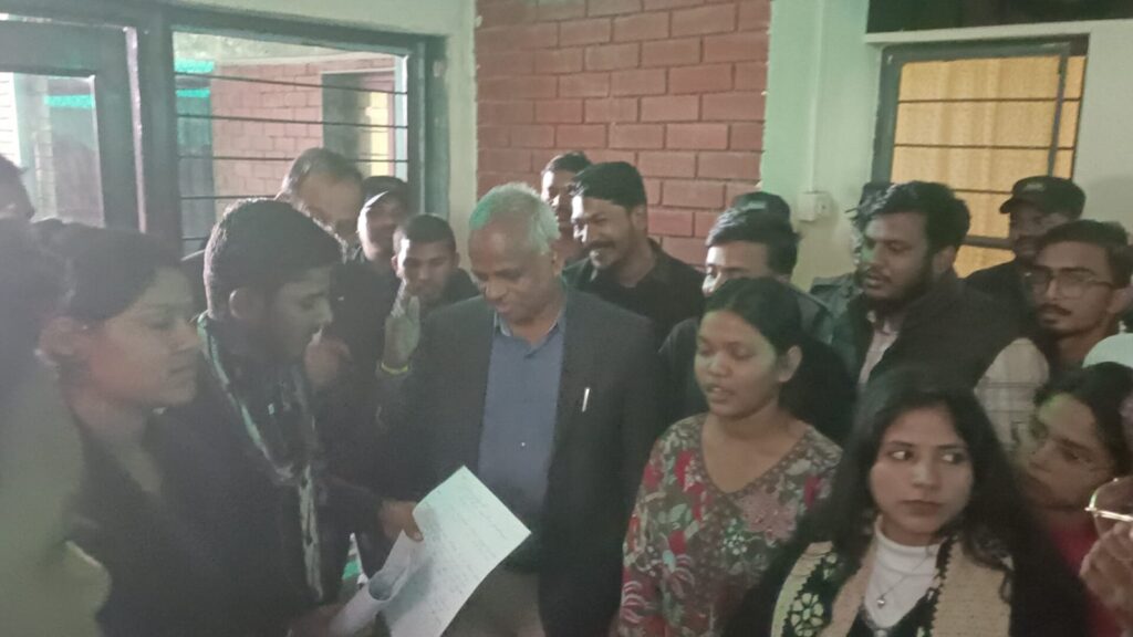 धरना-प्रदर्शन के दौरान छात्र–छात्राओं ने सर्वसम्मति से मांग की कि आरोपी शिक्षक डॉ. नयन साहू को तत्काल प्रभाव से निलंबित किया जाए तथा डॉ. नयन साहू जैसे चरित्रहीन शिक्षक का संरक्षण करने वाले लगभग 10 शिक्षकों को भी निलंबित कर उनके विरुद्ध निष्पक्ष जांच कराई जाए। उल्लेखनीय है कि डॉ. नयन साहू विश्वविद्यालय के तथाकथित शिक्षक संघ के महासचिव हैं और इसी पद की आड़ में उन्होंने एक नहीं, बल्कि दर्जनभर छात्राओं के साथ गैरकानूनी एवं अश्लील गतिविधियाँ की हैं। एक के बाद एक कई छात्राएँ अब सामने आकर शिकायत दर्ज करा रही हैं।
